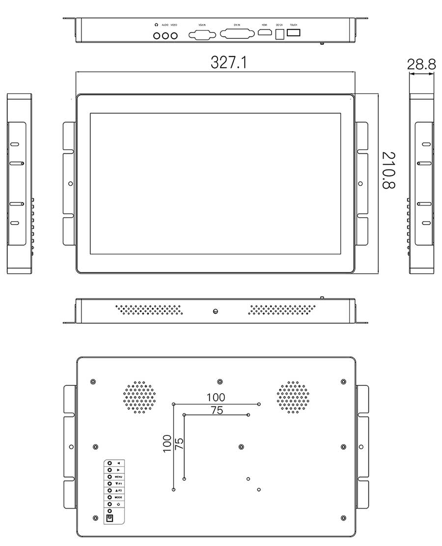 支持嵌入式、壁掛式等多種安裝方式,方便在各類行業中靈活應用。 (配送的掛耳可滿足您嵌入式安裝的需求,標準螺絲孔距VESA 100x100mm可支持壁掛式安裝)