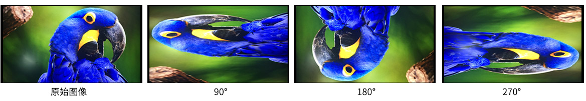 顯示旋轉是在單畫面下可以實現0°, 90°, 180°, 270°, 水平鏡像, 垂直鏡像模式翻轉。
