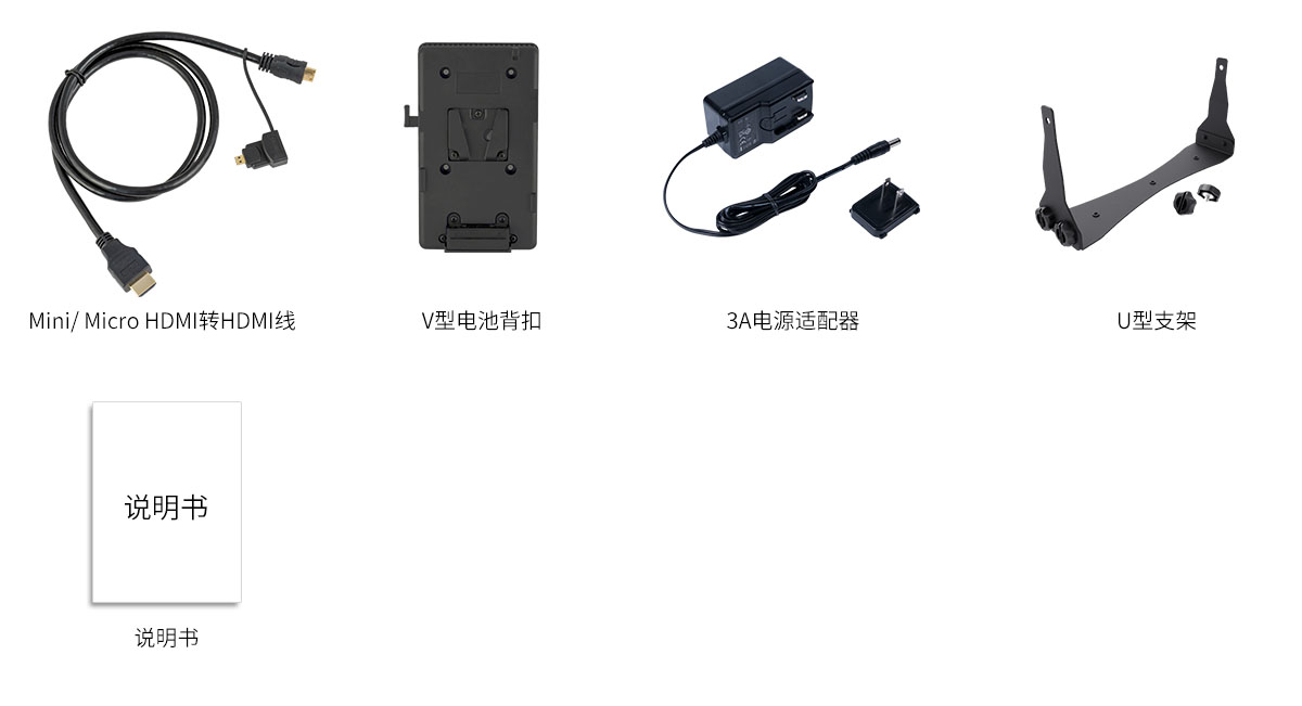 配備的U型支架設有3個標準1/4英寸安裝孔,可以輕松完成各類安裝,且兼容第三方裝備。 您可以連接怪手將其懸掛在其他裝備上或者安裝在攝影支架上,以便供整個攝制組監看畫面作為輔助,也可以將其放在工作臺上進行監看。