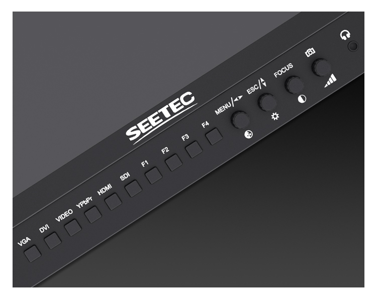 當您忙碌于拍攝現場時,需要的是能輕松地控制設備。P238-9HSD-CO配備多個按鍵和旋鈕,能夠一鍵式信號源切換,并配有4個快捷鍵(F1~F4)可根據自身需求設置快捷鍵功能,如單色顯示,安全框等。您還可以快速調節亮度、對比度、音量等,讓您在拍攝過程中游刃有余。